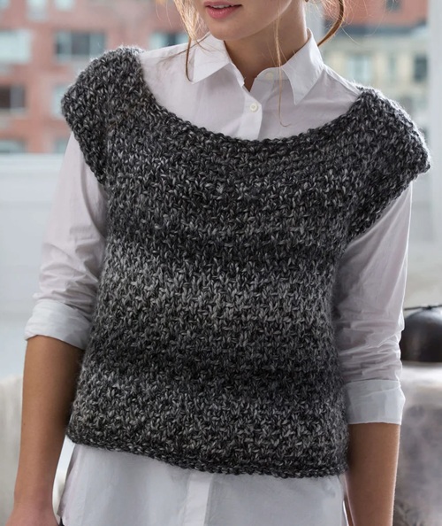 Check out this ribbed top knitted pattern by Lion Brand Yarn, which gives a neat, balanced look without being too complicated. It is made with fine-weight yarn and requires advanced skills.