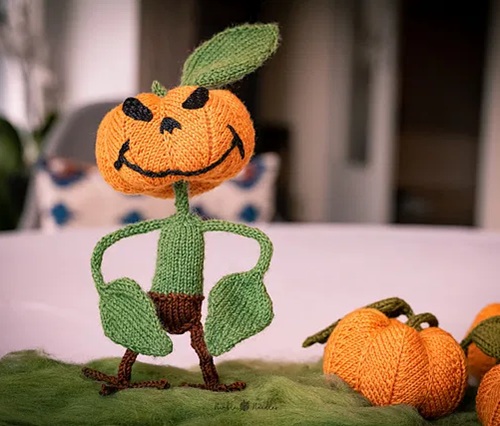 This detailed pattern by nimble-needles lets you knit a characterful pumpkin figure. It is great for knitters who enjoy shaping and want a project that really stands out for fall decorating.