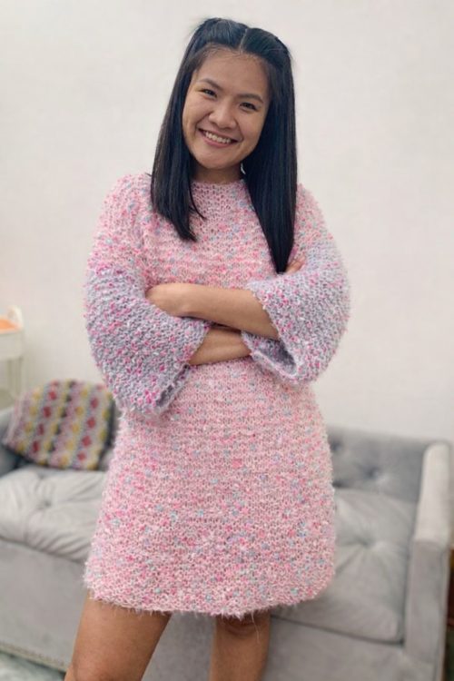 Looking for a dress that works well for special outings as well as winter? Then this sweater dress pattern by KnitcroAddict is a must-check-out. All you need is a simple garter stitch pattern with medium-weight yarn and a US 11/8mm circular knitting needle.